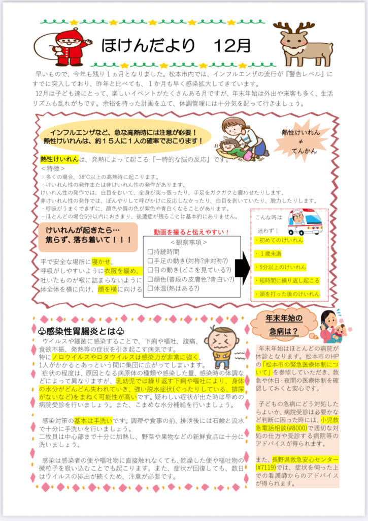 12月保健だより 2025 12/04 お知らせ 2025年12月1日2025年12月4日 お知らせ よかったらシェアしてね! URLをコピーしました! URLをコピーしました! 12月の献立 【重要】価格改定及び定休日変更のお知らせ(2026年1月1日より) 関連記事 【重要】価格改定及び定休日変更のお知らせ(2026年1月1日より) 2025年12月4日 12月の献立 2025年12月1日 12月の予定 2025年12月1日 RSウイルス感染症発生のお知らせ 2025年11月21日 年末年始のお知らせ 2025年11月18日 11月献立 2025年10月31日 11月予定 2025年10月31日 10月ほけんだより 2025年10月1日